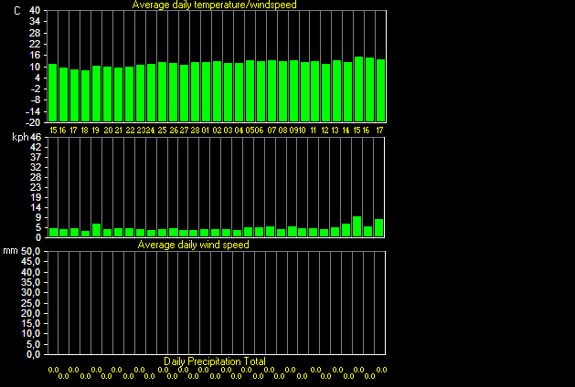Maximum windspeed = 24.1 kmh from 103°(ESE) on day 17 at time 13:45